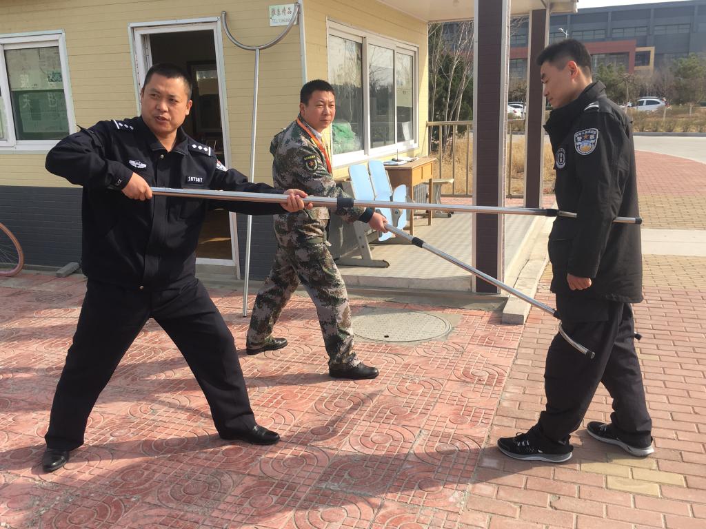 为进一步提高学院反恐防暴应急处置能力,确保学院正常的教学和工作秩序,维护学院安全稳定,近日,学院在警务室门前组织学院保安、校园纠察队以及部分教职工开展反恐防暴技能培训活动,特邀央子边防派出所陈警官参加培训指导。此次培训有由安保处处长助理孟凡明主持。