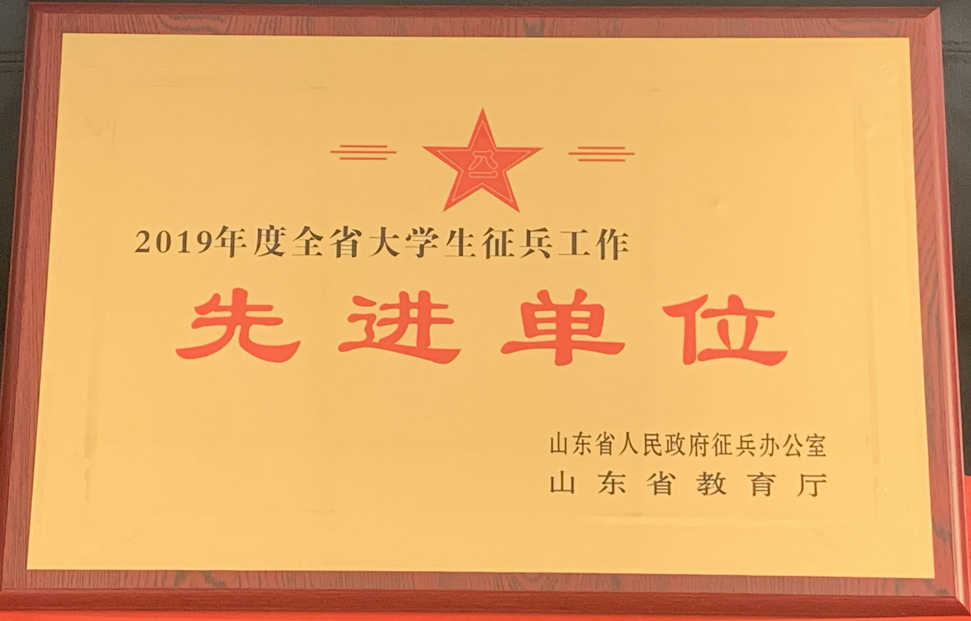 日前,山东省人民政府征兵办公室、山东省教育厅联合发文,对全省征兵工作进行通报表彰,我校荣获“2019年度全省大学生征兵工作先进单位”。