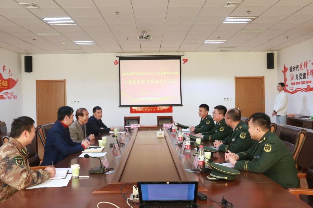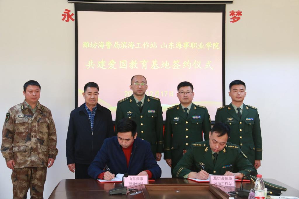 12月17日上午,九五至尊VI“爱国教育基地”签约仪式在学校图书馆一楼会议室举行。校长王敬良、副校长仉继航、副校长李振鹏、校武装部副部长孟凡明以及潍坊海警局局长鲁瑜、政委孙永升、滨海站站长管鑫、滨海站教导员薛巨亮参加了签约仪式。