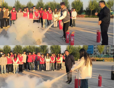 在灭火演练环节,学校安全管理处孟凡明处长现场讲解了灭火器的使用注意事项,演示了如何正确使用灭火器。“提”“拔”“握”“压”,同学们纷纷上前跃跃欲试,亲身体验灭火器的使用方法,在体验中增长了消防知识,掌握了灭火技巧,强化了安全意识。