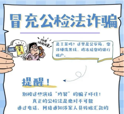 骗子冒充公检法工作人员,要求受害人转账或提供个人银行信息,以解决涉案问题。