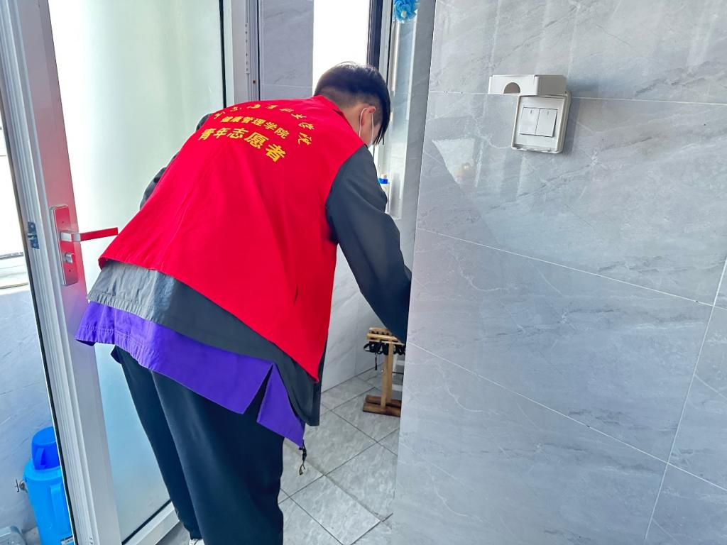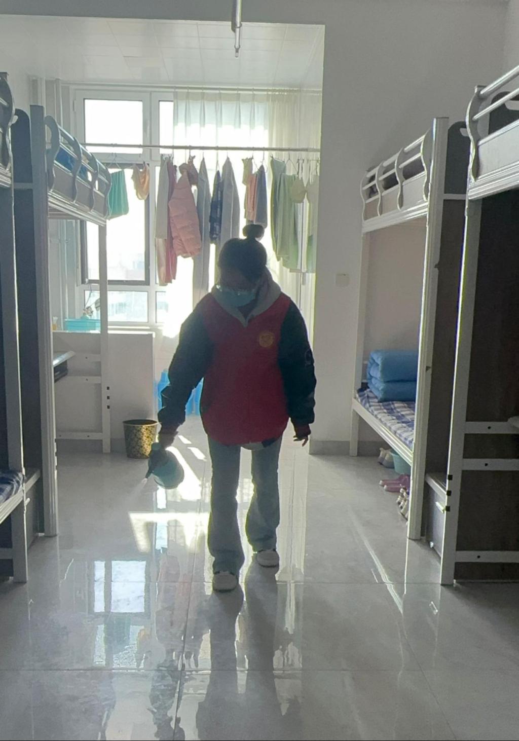 下午两点,志愿者们开始了对宿舍的消毒工作,经过了上午的消毒工作,志愿者们对工作更加熟练,消毒工具用起来也更加得心应手。志愿者们认真专注的身影穿梭在宿舍当中,让原本安静的宿舍充满了忙碌的气息。