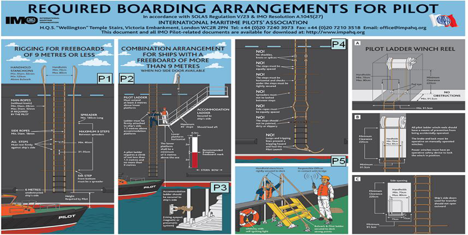 引航员登离船装置是一项系统工程,涉及的行业、部门很多,对于踏板、防止软梯扭转的横撑踏板、橡胶踏板、扶手绳、边索、扶手立柱等的材料有特殊的要求,对舷梯、舷墙梯、舷门等有特殊的行业标准,对甲板通道的防滑和照明等也有规定,对检查、保养、维修和贮藏等总结了很多经验。只要船方重视引航员的登离船,遵守相关的国际公约,保持海员的优良传统,一定能保证引航员和引航船艇的安全,并促进引航安全。