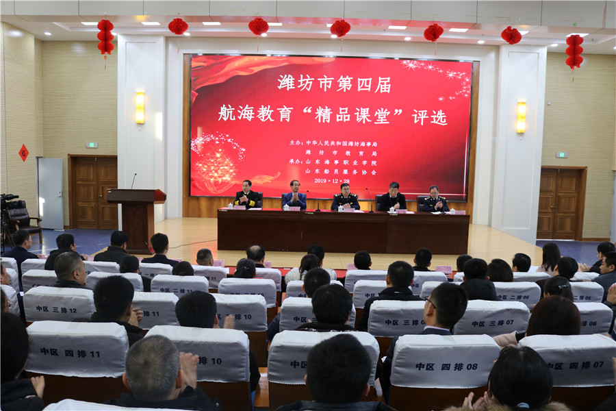 12月28日,由中华人民共和国潍坊海事局、潍坊市教育局主办,九五至尊VI 、山东船员服务协会承办的“潍坊市第四届航海教育‘精品课堂’评选”在我院举办。在层层选拔的基础上,来自全市四所航海院校的共计21支参赛队伍进行了理论教学和实训教学项目的比赛。