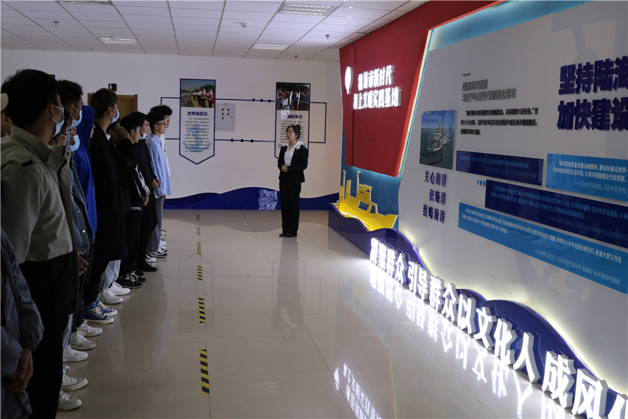 在专业教师的带领下,同学们依次参观了潍坊市新时代海上文明基地主展馆、国际海洋中心、模拟船、ERM实训室、BRM实训室等场馆。每到一处场馆,首先由实训负责老师讲解参观注意事项,然后就实训室的整体情况、设备的基本工作原理及所学课程的相关性进行了详细的讲解。