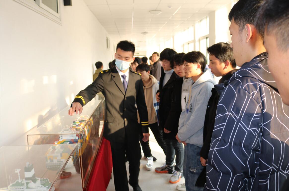 在船舶模型展示区域,同学们认真聆听教师的讲解,了解各类船舶的结构特点;在绳结展示区域,同学们在讲解老师的指导下也尝试了各类水手绳结的打法;手旗旗语表演让同学们在体悟现代航海技术发展的过程中,感知航海魅力。