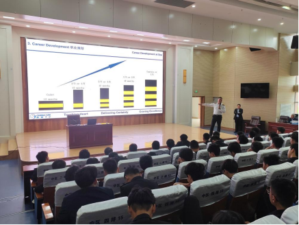活动过程中,王船长就当前船员市场需求、船员行业发展趋势等热门话题给同学们做了分析,并结合自身航海工作经历为在场学生的专业学习、职业生涯规划和毕业就业选择提供了富有针对性的指导建议。