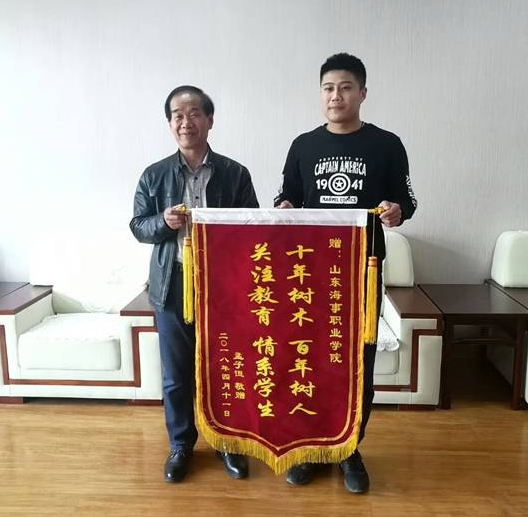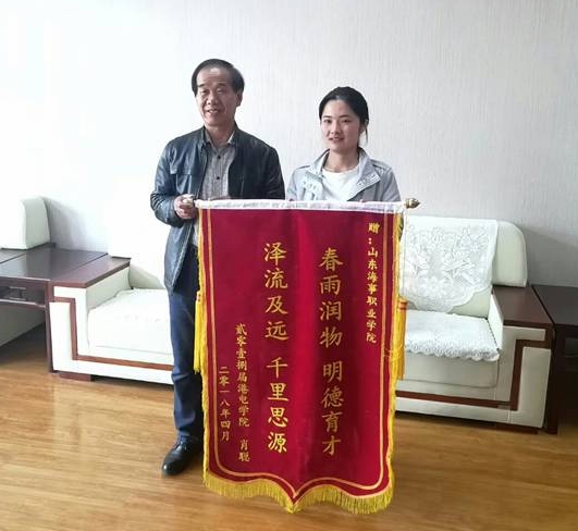 肖聪、孟子恒同学向学院赠送锦旗以表达对学院培养的感激之情