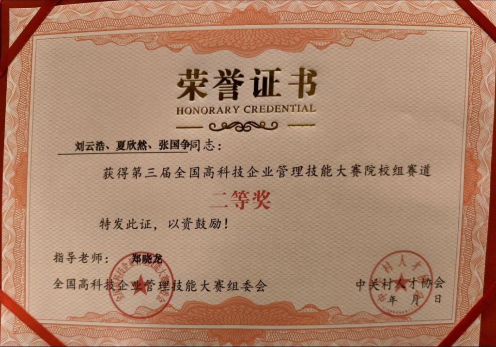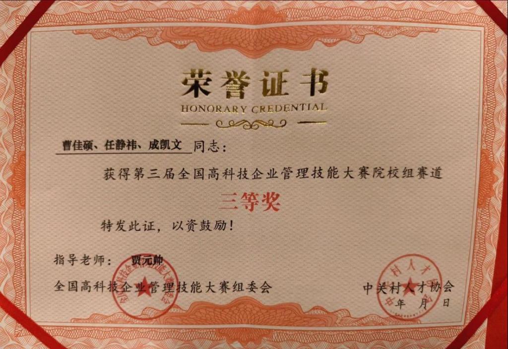 9月21日至24日,由中关村人才协会主办的第三届全国高科技企业管理技能大赛在杭州举行。经过激烈角逐,我校郑晓龙老师指导的参赛团队荣获比赛二等奖,贾元帅老师指导的参赛团队荣获比赛三等奖。