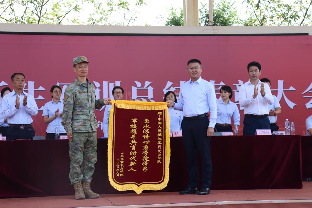 党委副书记、代理校长徐立清代表学校向承训部队赠送锦旗,对承训部队首长和全体官兵致以崇高敬意,向保障此次军训顺利进行的教师和工作人员表示衷心感谢,对圆满完成军训任务、取得优异成绩的全体同学表示热烈祝贺。希望2024级全体同学牢记“积跬步 至千里”的校训,坚定理想信念,以满怀的奋斗姿态,志存高远、乘风破浪,让青春更加绚丽,让人生更加辉煌。