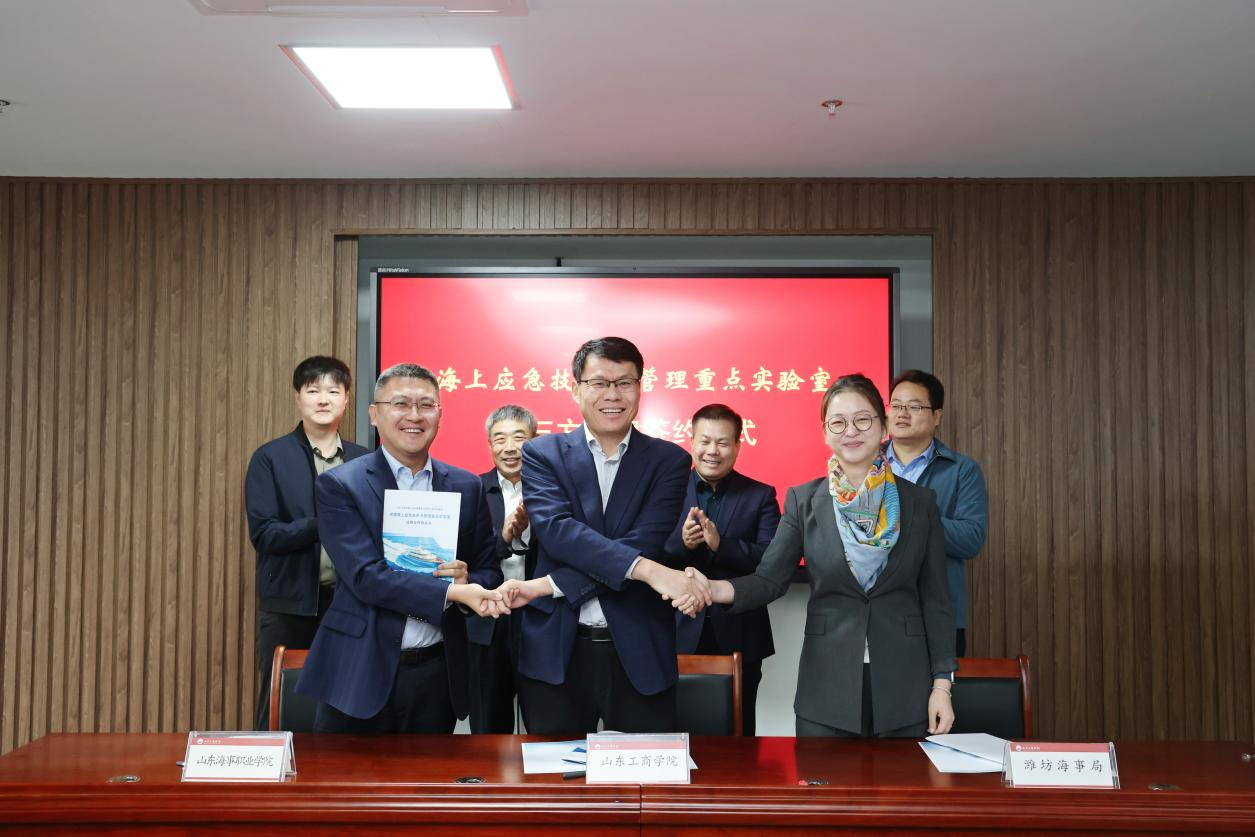 会上,学校与山东工商学院、潍坊海事局签署海上应急技术与管理重点实验室三方共建合作协议。山东工商学院副院长李希亮、山东省应急管理厅科技信息化处副处长田昊、山东海事局安全处副处长张鹏飞、烟台市应急管理局应急指挥中心于家浚见证签约。
