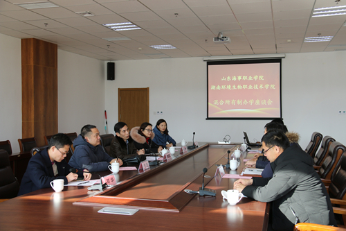 1月24日,湖南环境生物职业技术学院商学院院长谭绍雄、党总支书记李美会、副院长李振、姚阳等一行5人来学院就混合所有制办学考察座谈。学院党政办公室、研究室、对外合作交流处、电商学院等相关部门负责人参加了座谈会。