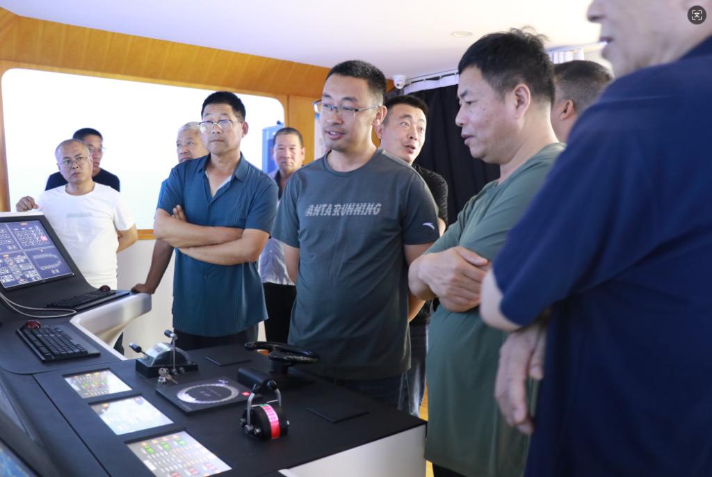 在“情景模拟”环节,20余名商渔船船长及渔业协会代表、海事执法人员与航海专业专家齐聚学校航海虚拟仿真实训中心,依托航海模拟器开展沉浸式教学体验。商渔船船长分组操作船舶驾驶,在逼真的复杂气象和通航环境下进行避碰决策;学校航海专业授课教师则从技术层面深入解析船舶自动识别系统(AIS)和电子海图的应用,助力商渔船长提升综合运用导航设备协调避让的能力,切实增强应急处置水平。