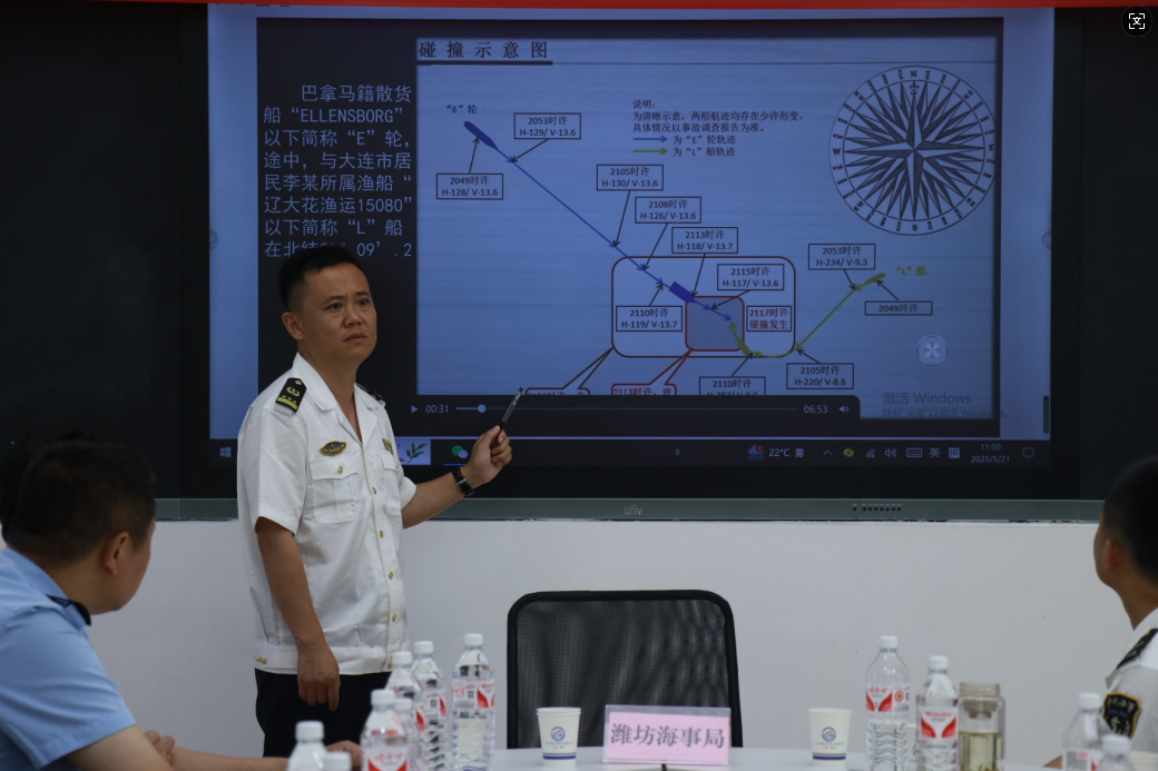 在“经验共享”环节,商渔船长结合模拟器操作体验,从自身从业经历,分享渔区航行、渔网密集区域规避等实战经验。针对商船与渔船航行习惯差异、能见度不良时应急响应等痛点问题展开深入讨论。海事执法人员通过播放近年商渔船碰撞事故警示影片,以案释法剖析事故主因,强调严格遵守航行规则、杜绝疲劳驾驶和违规占道行为的关键作用。