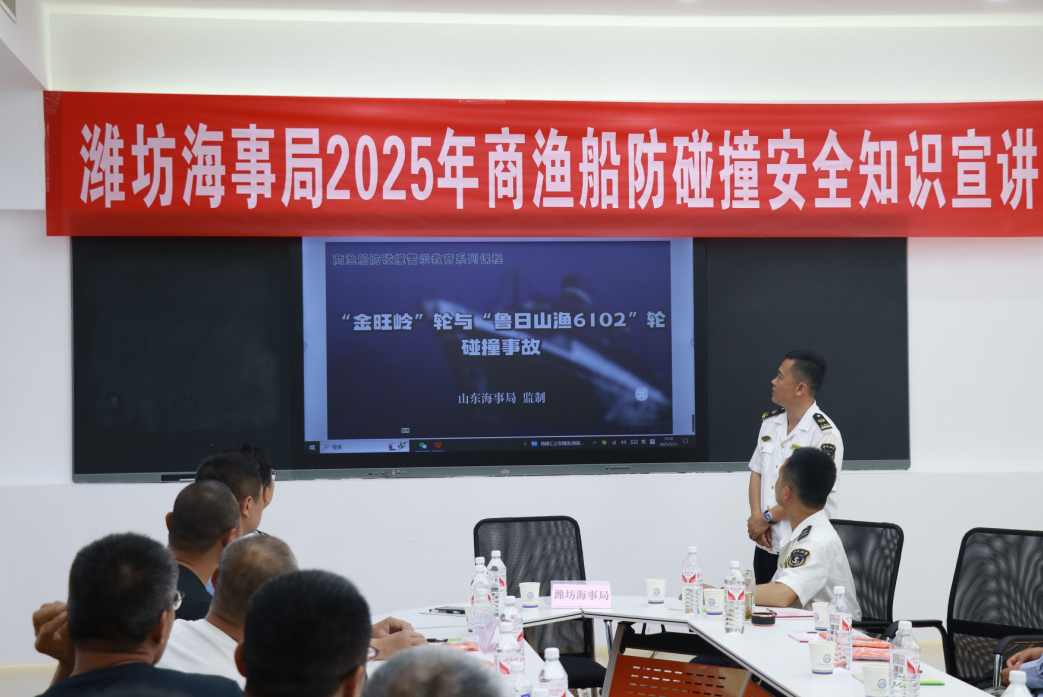 在“法规解读”环节,海事执法人员结合《海上交通安全法》《渔业船舶航行值班规则(试行)》等法律法规,系统解读商渔船避碰责任划分、信号显示规范等核心条款。通过对比分析典型事故案例中“未保持正规瞭望”“未正确使用安全航速”等违法行为,阐明法律追责后果,强化船长“依法航行、依规操作”的责任意识。