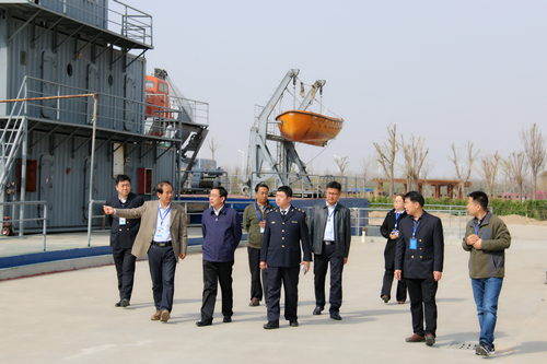 胡建升处长在院长王敬良等人的陪同下巡查了学院机电实训室、轮机实训室等实训室,然后与学院领导进行了深入座谈。院长王敬良从学院的办学定位、发展规划、专业设置、海洋类精品特色专业建设和海员培训考核等方面向胡处长作了介绍;副院长李振鹏就航海类专业设置、教学培训师资以及教学培训中遇到的问题也向胡处长做了说明;徐立清副书记介绍了学院海事类专业招生情况,航海学院院长吕明汇报了正在建设中的模拟船实训中心建设情况。