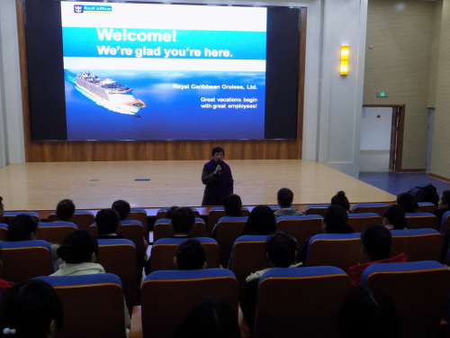 12月12日至13日,美国皇家加勒比游轮公司来学院招聘优秀国际邮轮乘务人才。共计40名学生参加面试,初试通过28人,通过率为70%,复试通过12人,总通过率为30%,并且有9人获得了高级职位。