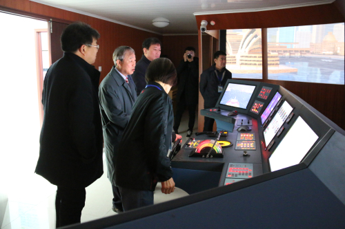 15日上午,郑海荣处长一行在院长王敬良、副院长李振鹏等的陪同下,参观学院校园及航海模拟器实验室、轮机模拟器实验室、航空实训基地、高铁实训基地、跳水馆等。并到山东海洋科技大学主校区现场考察了大学建设进展情况,探讨了合作共建山东海洋科技大学和新罗大学分校等事宜。