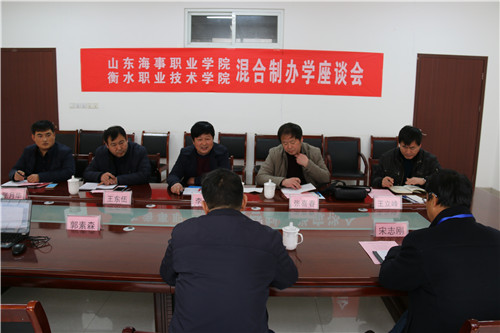 座谈会上,副院长李振鹏代表学院对衡水职业技术学院考察团表示热烈欢迎,介绍了学院混合所有制办学情况,并与衡水职业技术学院副院长李洪来就混合所有制办学模式、内部运行机制等进行了细致探讨交流。