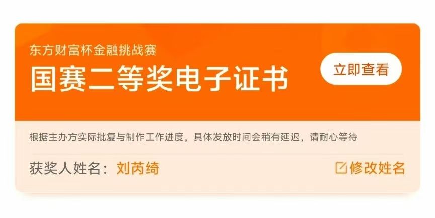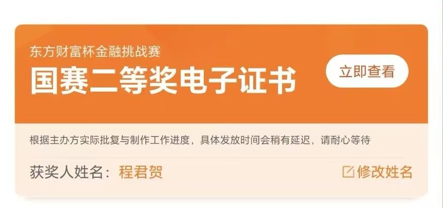 近日,第十一届“东方财富杯”全国大学生金融挑战赛全国总决赛圆满落幕。我校两名学子在全国三百万参赛者中脱颖而出,获国赛二等奖:其中,邮轮游艇学院一名学子、机电工程学院一名学子分别荣获国赛二等奖,彰显了山海学子在全国性跨学科实践赛事中的过硬实力与卓越风采。