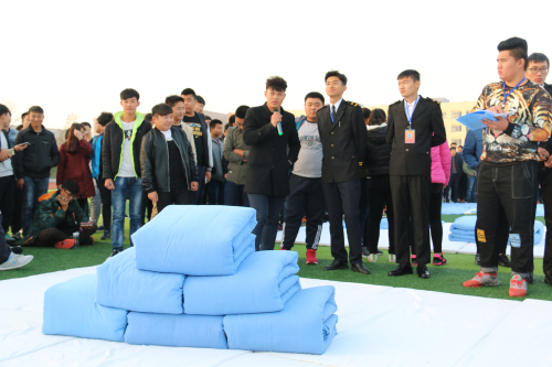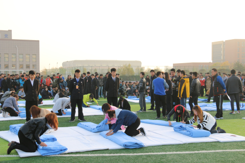 11月11日下午,为进一步巩固2016级学生军训成果,推进学生宿舍文化建设,丰富学生课余生活,大学生文化艺术节之公寓系列文化活动——“谁是生活能手之叠被子大赛”在学院足球运动场成功举办。