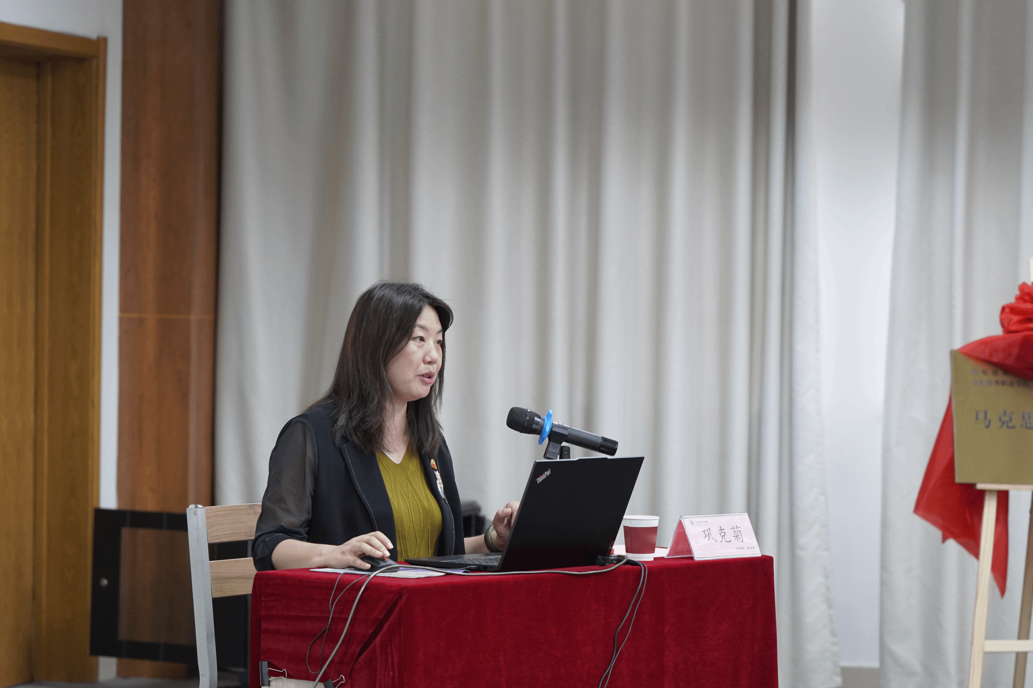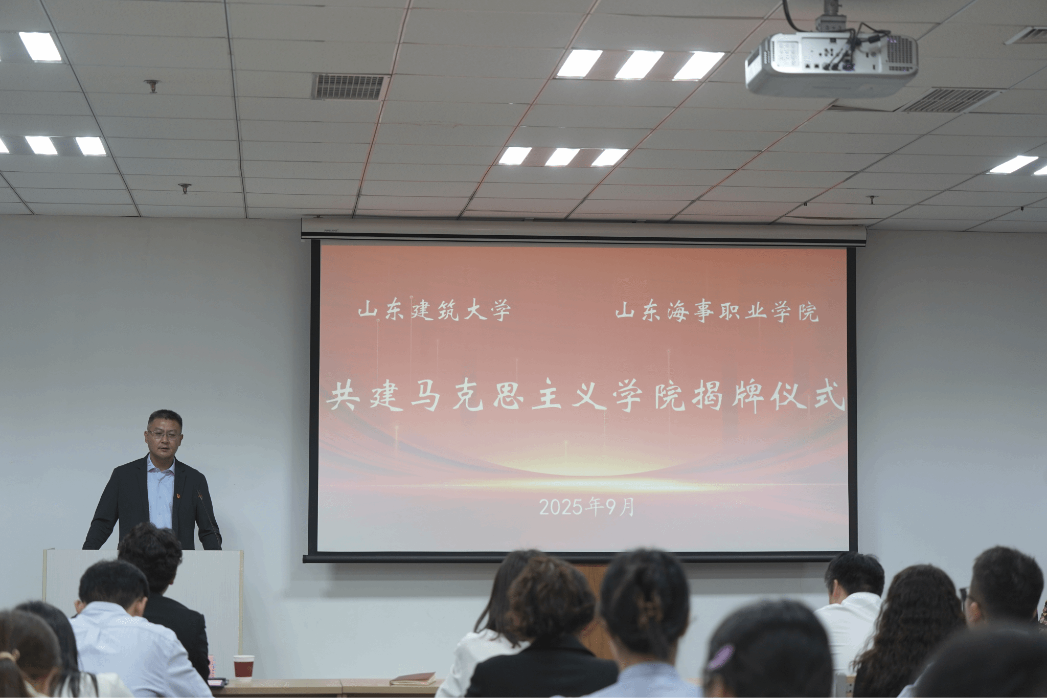 随后,巩克菊同志与仉继航同志代表双方共同为两院共建揭牌。揭牌仪式结束后,巩克菊同志以《以“马”筑才:马克思主义学院建设情况汇报》为题作专题辅导报告,系统介绍了山东建筑大学马克思主义学院的建设成效与发展经验,深入阐述了马克思主义学院的建设思路与工作举措。