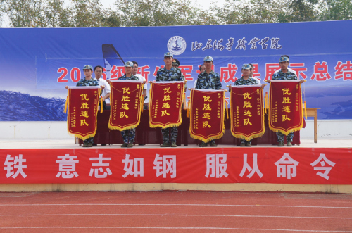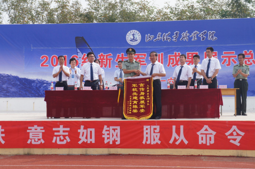 院领导和部队首长向优胜连队颁发荣誉锦旗