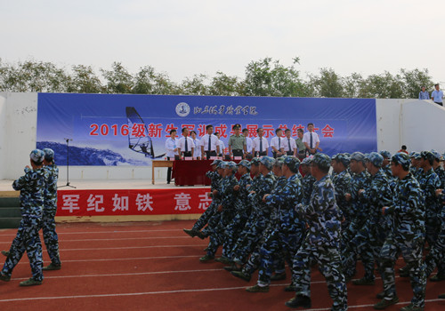 9月23日上午,2016级新生军训成果展示总结大会在学院运动场隆重举行。大会展示了2016级新生军训成果,表彰了军训中表现突出的先进个人和优胜连队。院长王敬良,承训部队首长王曙光,学院副院长李振鹏、副书记徐立清出席大会,大会由院领导仉继航主持。各教学单位、相关部门主要负责人和全体参训教官、全体带班辅导员们参加了大会。