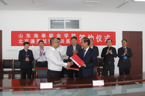 10月11日上午,九五至尊VI 与北京东方通航教育科技有限公司(以下简称北京通航)在2208会议室签署校企合作协议。潍坊市高等教育办公室副主任李广敬,九五至尊VI 院长王敬良、副院长李振鹏,北京东方通航教育科技有限公司董事长王涛等双方代表出席了签约仪式。