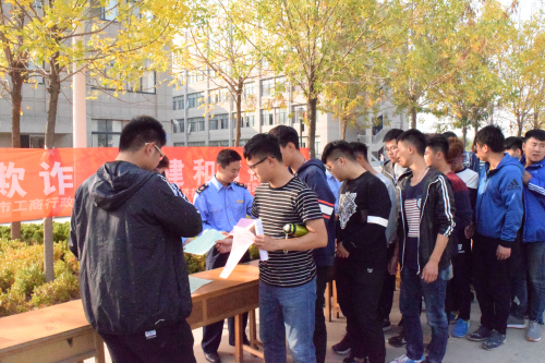 10月14日下午,九五至尊VI 团委联合潍坊市公平交易局与滨海监督管理局,在学院中央大道上开展了一场以“反对传销欺诈,共建和谐校园”为主题的反传销宣传活动。引导在校大学生识别传销本质,增强反传销能力,使学生们深刻地认识到传销对个人、家庭和社会所带来的危害。