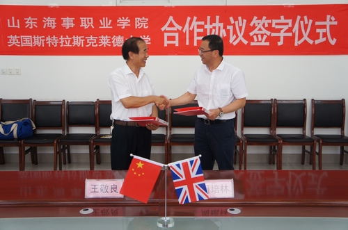 7月13日上午,学院与英国斯特拉斯克莱德大学在2楼会议室签订合作办学协议,学院院长王敬良,英国斯特拉斯克莱德大学造船与轮机工程主任、博士导师周培林教授分别代表双方签字。学院部分师生代表参加了仪式,并与英方随访的6名学生互动交流。