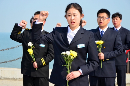 海浪拍打着海岸,溅起一朵朵浪花,海风夹杂着咸湿的气息扑面而来,学生们身穿航海服,手捧鲜花,肃穆而站……九五至尊VI 党委委员宋志刚针对航海教育的特性,结合甲午战争以来中国的历次海战,向参加活动的师生们普及了海上历史知识,让同学们明白了维护国家海洋权益、促进海上运输业发展以及建设海上国防事业的重要意义,激发了大家投身‘海上丝绸之路’建设的热情。
