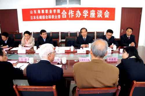 3月14日,日本长崎综合科学大学理事长立石晓一行四人在中国海洋大学人事处处长万荣博士的陪同下,来学院洽谈合作办学事宜,双方就近期和远期办学互惠发展达成框架性合作意向。潍坊市高等教育办公室副主任李广敬,学院院长王敬良、副院长李振鹏、副书记徐立清等接待了来宾。