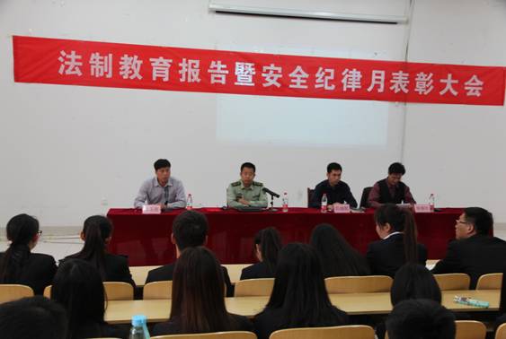 2015年5月7日,学院在2518报告厅隆重召开法治报告会暨安全纪律月活动表彰大会。院领导仉继航、学生处处长张锡功、武警边防派出所教导员沈鸿周出席会议并为获奖同学颁奖,优秀学生代表及全体学生干部参加本次大会,会议由学生处吕玉国主持。