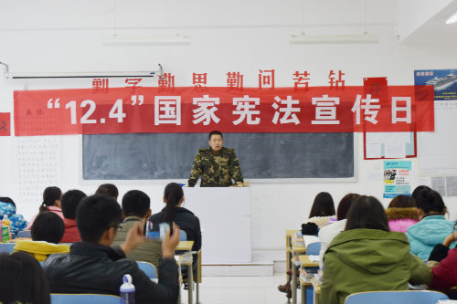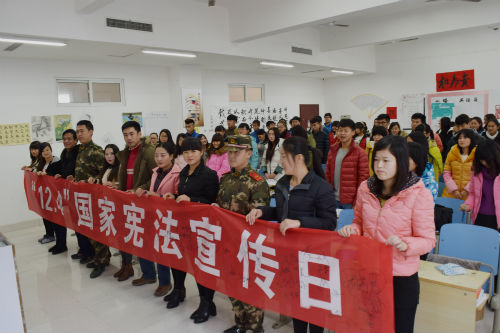 12月4日,学院邀请武警边防派出所教导员沈鸿洲为学生做了一场以“学习《宪法》,弘扬法治精神”为主题的报告会,会后,师生们开展了“国家宪法日”签名活动。。院长助理仉继航参加相关活动并讲话。