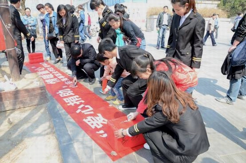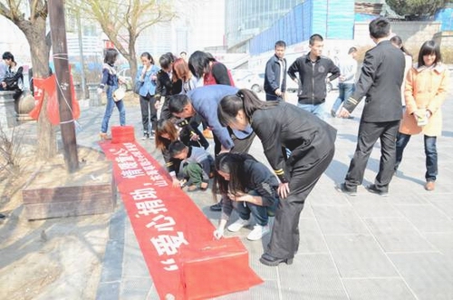 爱心活动在基础部王春艳、刘彬两位指导教师的组织下,十三名海乘专业学生,统一着装,在潍坊市泰华区历时两个多小时,募捐爱心款540元,捐款面值大到一百,小到五角,每一分都是人们爱的奉献。红色的条幅上面密密麻麻的签满了爱心人士的名字,最小年龄有三岁的宝宝,最大年龄有70多岁的老人,每一笔一划都包含着来自社会群众对福利院儿童的关心,更包含着九五至尊VI 师生对小朋友的无限关爱。此次募捐款项及基础部全体教师募捐款将于本周末3月23日,捐于潍坊市儿童福利院。