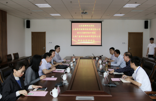 5月21日下午,上海华洋海事科技服务有限公司总经理包仁松携同爱尔兰SAFFtec中国区代理(瑞思科技有限公司)总经理吴越、上海广嘉国际船舶管理有限公司副总经理方春雷等一行人到学院考察洽谈校企合作项目。学院院长王敬良、院长助理宋志刚以及航海学院院长吕明、副院长许亮等人参加了座谈会。