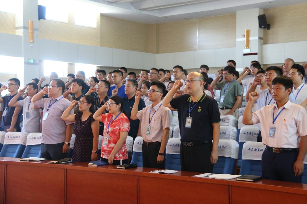 会上,党委副书记、副院长徐立清同志带领全体党员同志重温了入党誓词。随后,徐立清同志宣读了《2018年度潍坊市教育系统先进基层党组织和优秀共产党员、优秀党务工作者表彰对象名单》,即2018年度潍坊市教育系统先进基层党组织为学院航海学院、优秀共产党员为陈铭志同志、优秀党务工作者为臧琪琳同志。