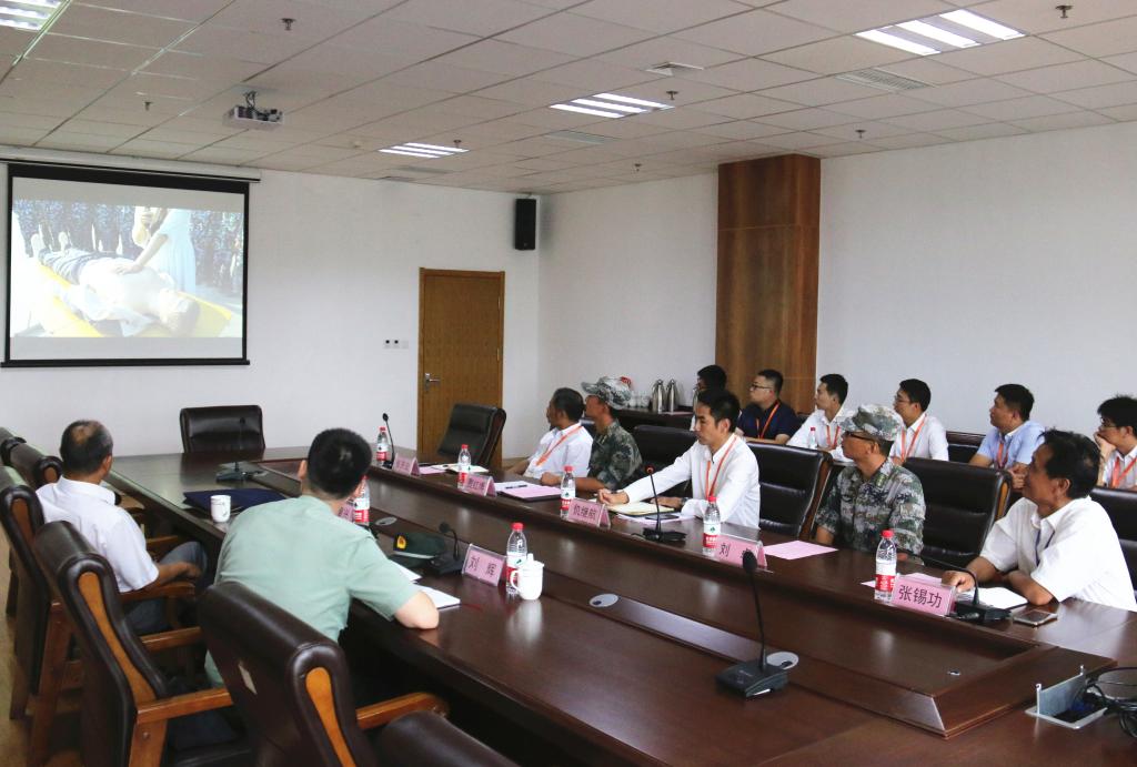 省督察组观看了学院2018级新生军训纪录短片。省督察组刘辉参谋对学院及承训部队的工作给予了充分肯定,并对贾红博同志提出的建议分别从军训时长、训练项目、实弹射击等方面做出回应。