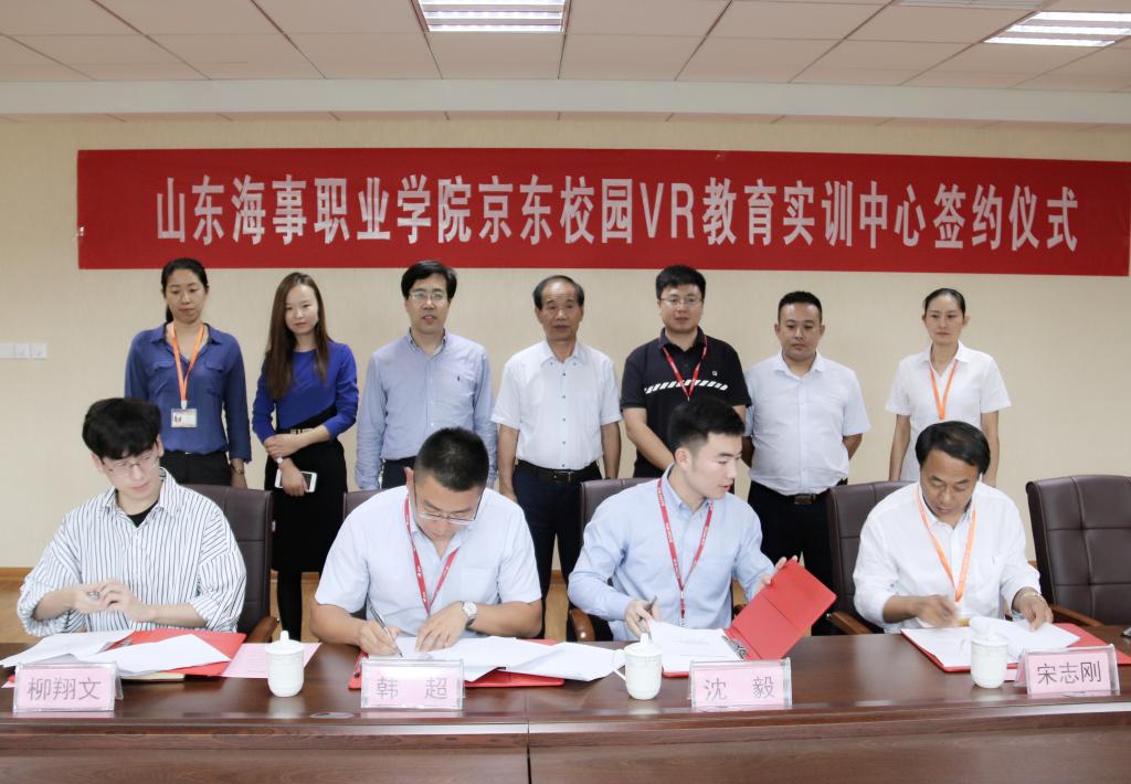 9月18日上午,学院与江苏京东信息技术有限公司、新迈尔(北京)科技有限公司和江苏火柴实景云网络科技有限公司一同签署了校企共建京东校园VR教育实训中心协议。学院党委书记、院长王敬良,山东(潍坊)公共实训中心主任邵长山,学院院长助理宋志刚和校企合作处、教务处、京东·新迈尔电商学院、港航管理学院相关负责人,以及三家企业方项目负责人出席了签约仪式。