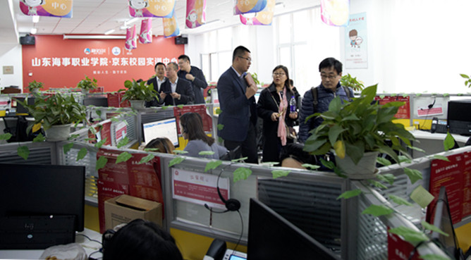 座谈会会后,辽宁科技职业学院考察团一行在研究室主任郭素森、京东·新迈尔电商学院副院长韩超陪同下现场考察参观了学院京东校园实训中心。