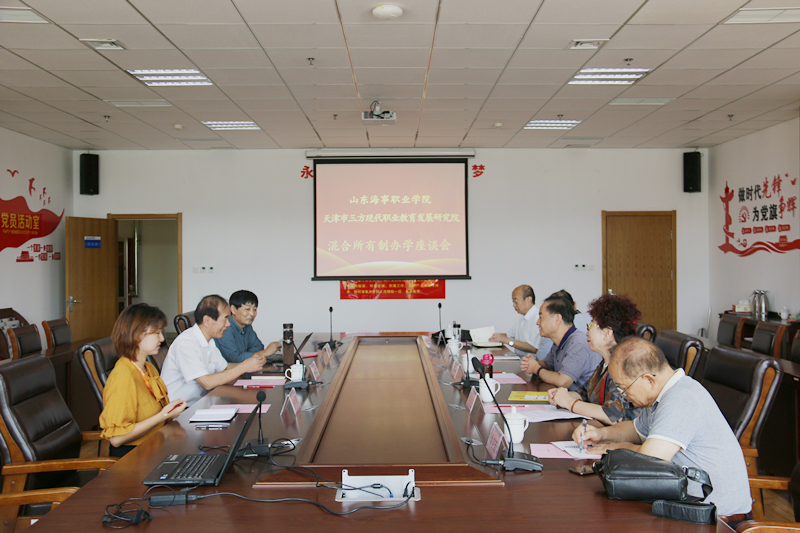 9月18日,天津市三方现代职业研究院院长荣长海,理事长赵丽敏等一行5人来学校交流研讨现代化职教混改办学经验。学校党委书记、校长王敬良、研究室主任郭素森等出席座谈活动。