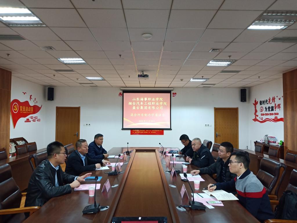 11月19日,烟台汽车工程职业学院、深圳盘古集团等一行6人至学校交流混合所有制办学经验,学校就业处副处长齐万昌、教务处处长助理刘学义、电商学院副院长韩超参加了座谈交流。座谈会上,双方就学校混合所有制办学优势、京东·新迈尔电商学院办学成果、实训基地建设和运行机制等进行了深入探讨与交流,并就双方在电商领域的合作进行了探索。