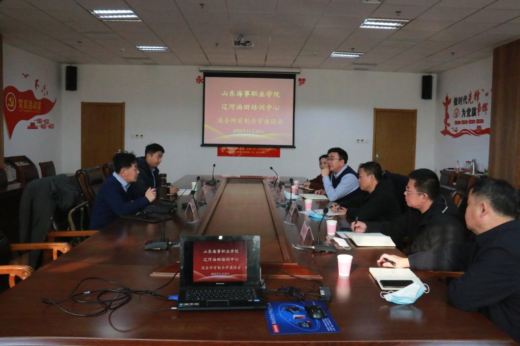 2020年11月24日,辽河油田培训中心副教育长王明国、党委办公室主任张春芬、财务资产科科长陈健勇等一行5人至学校研讨交流混合所有制改革及办学经验,学校研究室主任郭素森等参加了座谈交流。