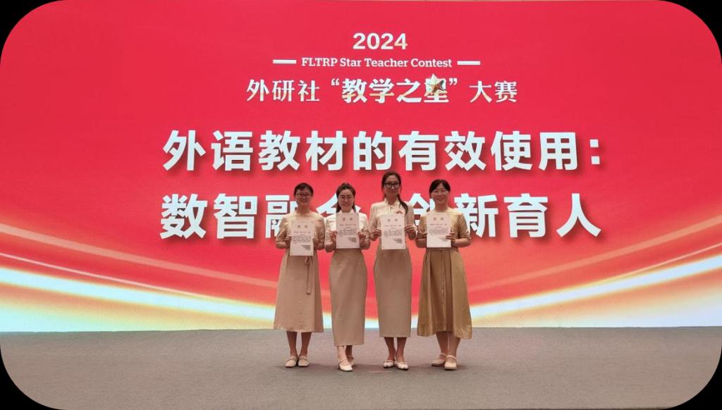 6月份,在2024外研社“教学之星”大赛全国复赛的113个参赛团队中,我校参赛团队脱颖而出,以第二名的成绩斩获全国复赛特等奖、并顺利晋级全国半决赛。7月30日,在2024外研社“教学之星”大赛全国半决赛中,经过激烈而精彩角逐,我校教师团队再次荣获一等奖。