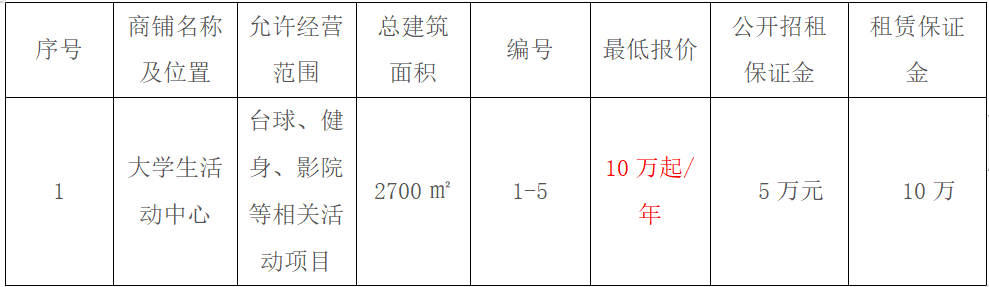 1.项目名称:九五至尊VI大学生活动中心招租项目。