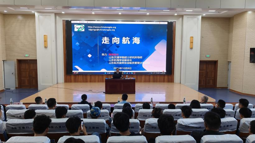活动邀请到了山东通达国际船舶管理有限公司总经理、高级船长陈力先生和青岛洲际之星船务有限公司船员部经理、船长沈爱兵先生作专题讲座。陈力船长围绕走向航海,以生动经历引导新生们探索认识航海世界,介绍了船员职业的重要性,并通过个人故事激发学生们对学好航海专业的热情,鼓励学生们要勇于追求梦想,不畏艰难,用知识和勇气去征服星辰大海,成为未来航海事业的继承者与开拓者。沈爱兵船长做了题目为《未来在自己手中》的专题讲座,他强调了航运业对全球经济的重要性,并阐述船员职业的关键作用和发展潜力,分析了航运企业对专业人才的需求,鼓励新生认识到行业前景,并介绍了自己对同学们大学三年如何进行职业规划的建议,鼓励新生积极面对挑战,勇敢追梦。