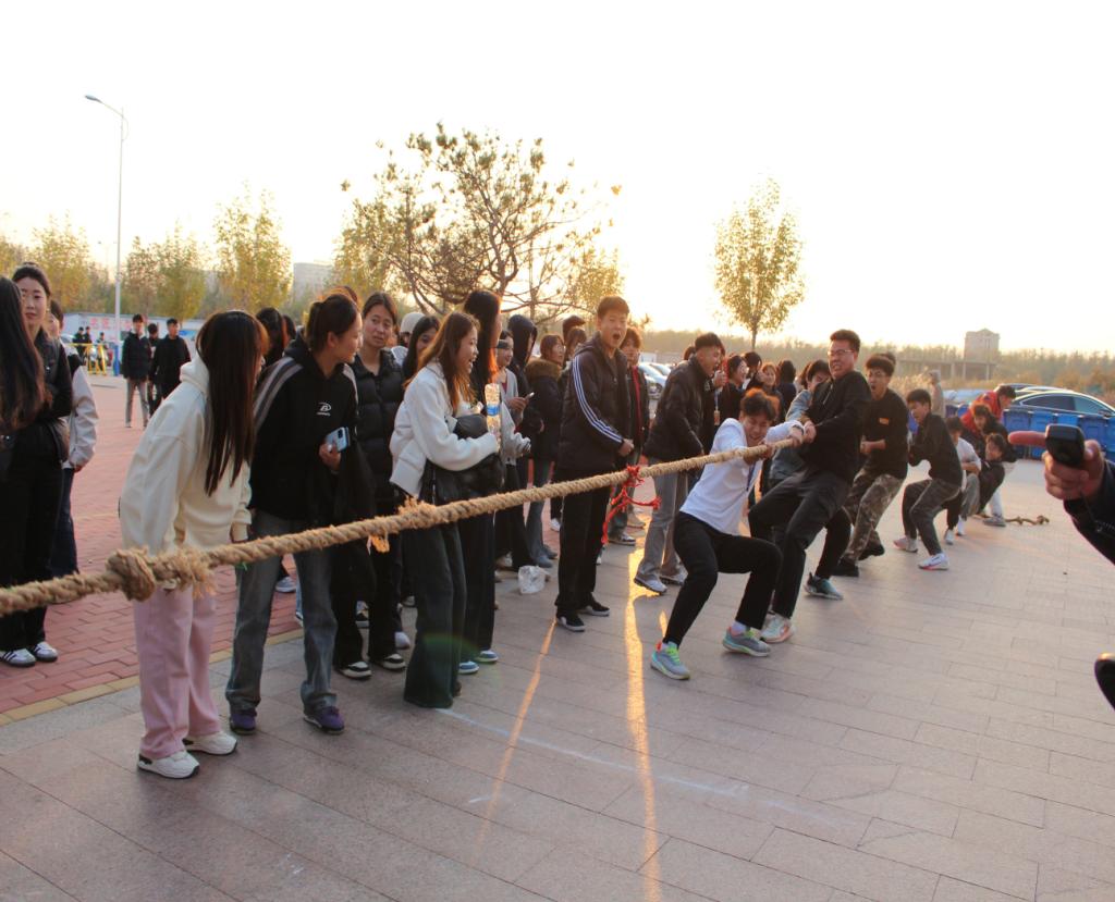 近日,学院在行政楼AB中间广场,举办了班级拔河比赛,此次比赛旨在丰富同学们的课余生活,增强班级凝聚力和团队合作精神,每班选派二十名选手(男生、女生各十人),一同角逐团结与力量的殊荣。比赛伊始,热烈的氛围便弥漫整个赛场,各班队伍有序入场,选手们士气高昂,眼神中满是对胜利的憧憬,随着裁判哨声的响起,双方队员瞬间进入状态,男生们爆发强大力量,肌肉紧绷奋力拉扯,女生们亦毫不逊色,咬紧牙关顽强坚持,赛场边,朋友们的呐喊助威声震耳欲聋。