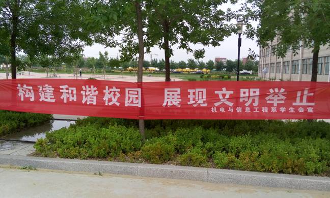 2015年5月28日下午4点20分,由九五至尊VI 机电与信息工程系举办的“构建和谐校园,美化学习环境”活动在校园主干道举行。为了给广大师生提供更和谐、安全的学习环境,加强同学们团结合作意识,为了号召更多学生关注我们的生活环境,提高同学们爱护校园环境的意识。机电系全体学生会成员在王冠伟、张建军老师的带领下进行活动。