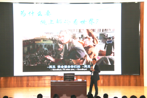 周骏驰先生作为邮轮行业职业经理人,有着丰富的邮轮工作经验,现在上海吴淞口邮轮码头担任贵宾厅经理一职,著有《跳上邮轮看世界》一书。报告宣讲会上,周骏驰先生通过讲述自己在邮轮上的工作经历,让同学们了解到邮轮行业的一些新鲜事物,极大的勾起了同学们对邮轮工作的向往与兴趣。周先生也讲述了自己在带薪工作的同时环游世界过程中一些酸甜苦辣。报告宣讲的互动问答环节,同学们积极提出了自己的一些困惑与想法,与周先生进行了亲密交流。周先生的宣讲让学院学生对邮轮行业工作有了更多、更深了解,为同学们以后就业工作提供了可借鉴经验。